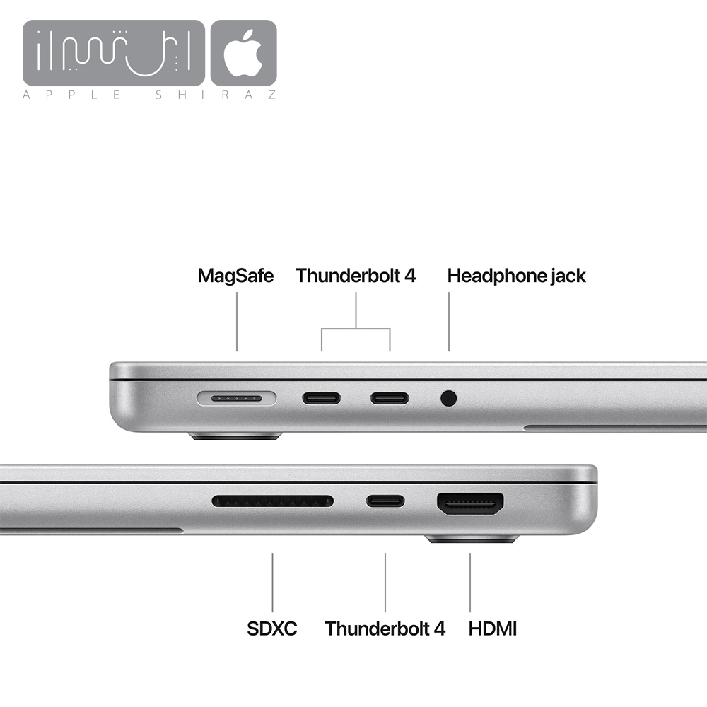 3 عدد USB-C، HDMI، AUX، SD card، Magsafe 3